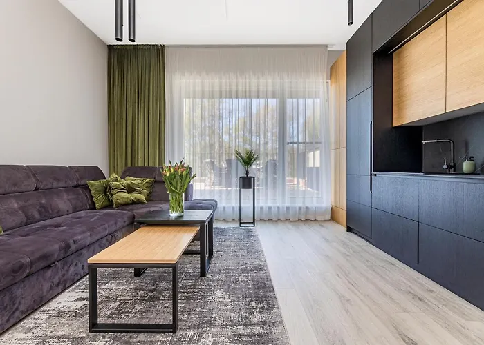 Overlooking the pool, the 1-room Green Apartments Kunigiskiai Palanga is about 7 km from the historical Bridge of Palanga. Bicycle hire is available at this beachfront apartment and the area is popular for canoeing, ping pong, and fishing.